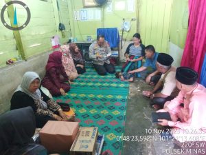 Siak/Riau-Kapolsek Minas AKP Wan Mantazakka SH MH bersama Camat Minas Nurfa Octolita SE melakukan Giat Jum’at berbagi di Kampung Minas Barat, Kecamatan Minas, Kabupaten Siak, Riau, Jumat (10/11/2023) sekira pukul 09.45 WIB.