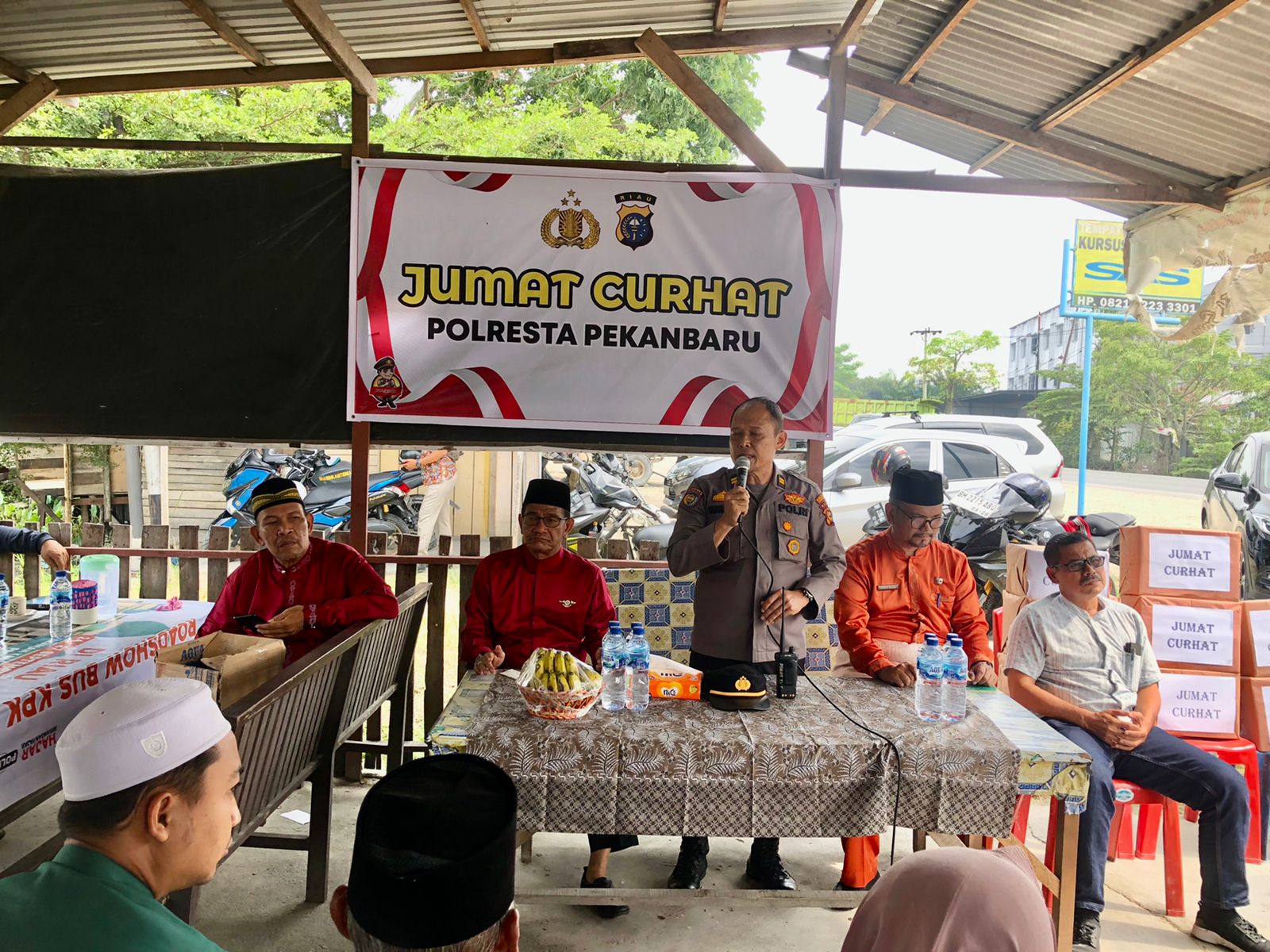 Pekanbaru, 13 Oktober 2023 – Kombes Pol Jefri RP Siagian SIK MH, Kapolresta Pekanbaru, melalui Kasat Binmas Polresta Pekanbaru, Iptu Apolas Sugiana, menggelar acara “Jum’at Curhat” pada hari Jum’at, tanggal 13 Oktober 2023, pukul 09.30 WIB, di Jl. Kubang Raya Kel. Tuah Madani Kec. Tuah Madani Kota Pekanbaru.