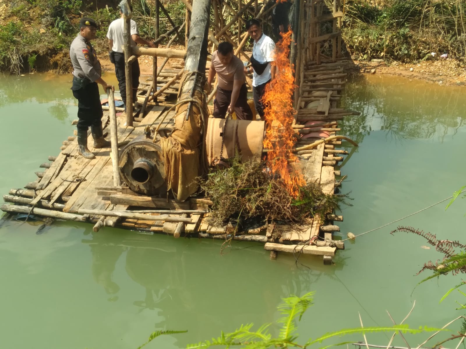 “Kemudian terhadap 3 ( Tiga ) unit rakit yang ditemukan tersebut langsung dilakukan tindakan dengan cara melakukan penindakan pemusnahan dan merusak rakit PETI tersebut dengan cara dibakar sehingga tidak bisa dipergunakan lagi,” ungkap AKP Sutarja.