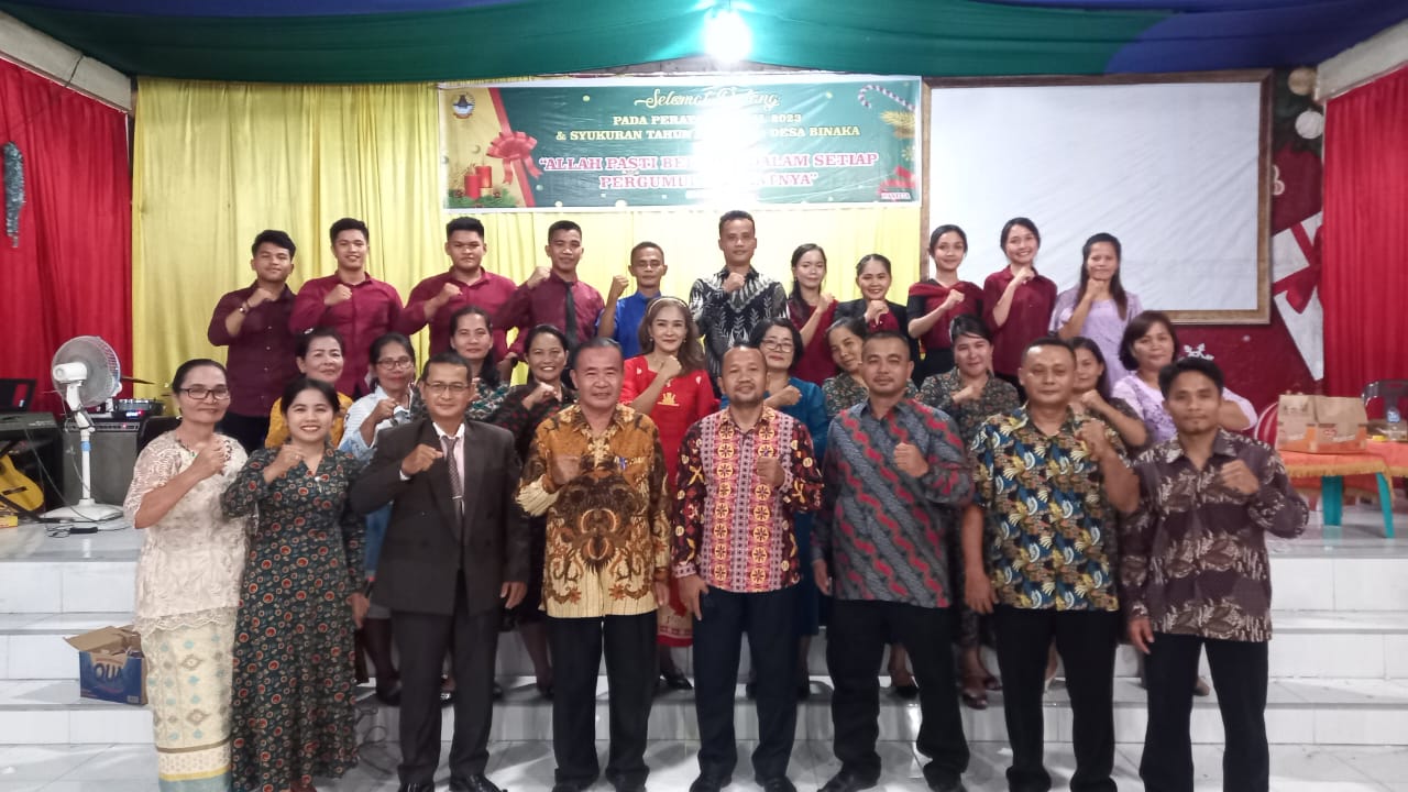 Turut hadir dalam perayaan Natal dan syukuran tahun baru BPD, LPM, TP-PKK, Tokoh Masyarakat, Satlinmas, ratusan warga desa Binaka.