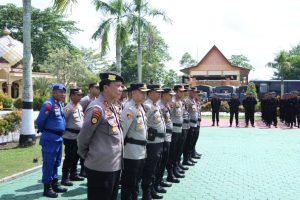 Lanjut AKBP Asep mengucapkan selamat datang kepada personil dari Brimob dan Dit Samapta Polda Riau di Polres Siak untuk membantu pengamanan di Siak.