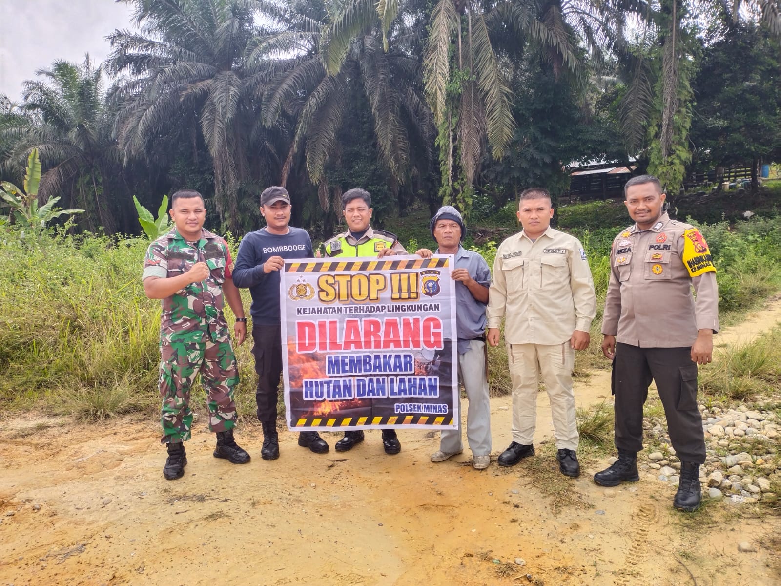 Siak,Bhabinkamtibmas Kampung Minas Timur Bripka Reza Ferdiyan SH bersama Babinsa Koramil 03/Minas Kopda Andri KP Hutagalung Beserta sejumlah warga, mereka melakukan kegiatan Patroli Karhutla di wilayah Kecamatan Minas, Kabupaten Siak, Riau, Jumat (20/10/2023) sekira pukul 10.30 WIB.