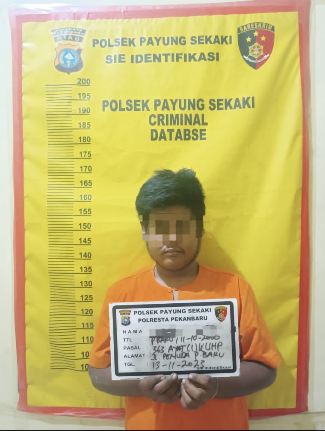 ” Benar. Pelaku ( YS_red) diamankan pada hari Senin 13 November 2023 sekira pukul 18.00 Wib di Jalan Pemuda Gg.Repalita II “, jelas Kapolresta Kombes Pol Jefri melalui Kapolsek Payung Sekaki Iptu Rejoice, Jum’at 17/11/2023.