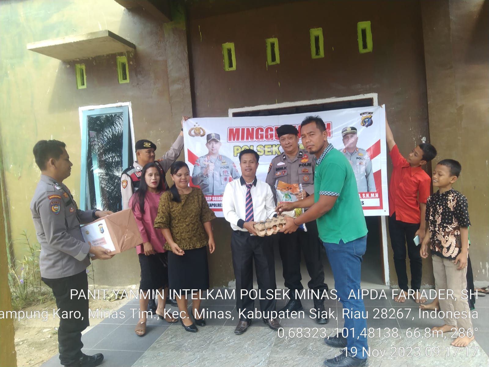 Gita itupun dipimpin langsung oleh Kapolsek Minas AKP Wan Mantazakka SH MH diwakili Panit I Samapta Polsek Minas Aipda Benni Kurniawan dan diikuti oleh Ps. Panit Yanmin Unit IK Polsek Aipda Fariader,SH, Bhabinkamtibmas Minas Barat Aipda Imanuel Kataren, Ba Patroli Polsek Minas Bripka Rico Ricardo, Pendeta GPDI Pelita Kampung Karo Bpk Obaja Mendropa serta Pengurus Gereja GPDI Pelita Kampung Karo dan para Jemaat GPDI Pelita Kampung Karo sebanyak 10 Orang.