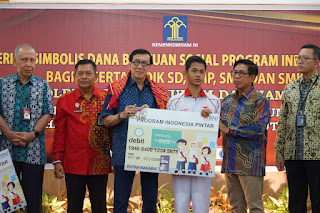 Menteri Hukum dan HAM, Yasonna H Laoly sebaga inisiator penyaluran bantuan dana ini memberikan langsung bantuan dana pendidikan PIP secara simbolis kepada empat orang siswa perwakilan dari SD, SMP, SMA dan SMK dengan besaran yang sudah ditetapkan oleh Menteri Pendidikan dan Kebudayaan, yakni: