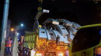 “Dengan menggunakan mobil crane petugas mengikat tiang dan membuka sambungan tiang ke penyangga. Setelah tiang lampu berhasil dilepas, selanjutnya tiang lampu dimasukkan ke dalam truk,” kata Topan, dalam keterangan tertulisnya, Sabtu (30/12/2023). “Kemudian petugas lainnya membongkar bagian bawah yang merupakan penyangga lampu. Dengan sangat hati-hati petugas membongkar penyangga lampu jalan yang dibalut dengan semen, sebab petugas tidak ingin jalur pedestrian yang sudah