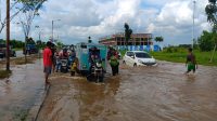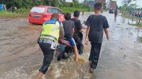 Sahabattnipolri.com_Pekanbaru. Mendapatkan laporan dari masyarakat adanya genangan air yang mengganggu arus lalu lintas, personil Satuan Lalu Lintas Polresta Pekanbaru langsung turun memberikan bantuan kepada masyarakat yang ingin melintas di Jalan Sudirman Ujung Jembatan Siak 4 tersebut, Selasa (02/01/2024).
