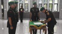 Pekanbaru – Danrem 031/Wira Bima, Brigjen TNI Dany Racka Andalas awan S. A. P pimpin acara tradisi korps serah terima jabatan (Sertijab) Kasipers Kasrem 031/Wira Bima serta Dandim 0301/PBR, kegiatan tersebut dilaksanakan di Auditorium Kaharudin Nasution Korem 031/WB Jalan Mayor Ali Rasyid No. 1 Pekanbaru, Selasa (9/1/24).