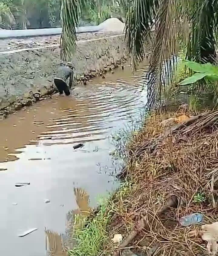 Demikian juga pada titik kordinat lainya, pohon kelapa sawit justru dibiarkan tumbuh dikelilingi TPT(Tembok Penahan Tanah) hanya batang di potong.