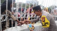 Aksi Humanis Kapolresta Pekanbaru bagikan buah dan minuman kepada peserta unjuk rasa