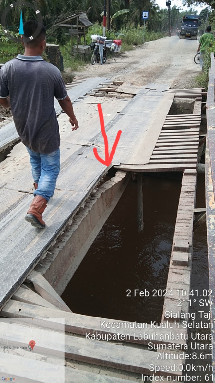 sahabattnipolri.com – Hal yang sangat memprihatinkan terlihat pada jembatan titi payung yang terletak di perbatasan wilayah desa sialang taji & desa Sukarame Baru atau kualuh selatan- kualuh hulu, sudah menjadi cerita dan pembahasan setiap harinya warga sekitar bahwa hancur nya jembatan yang tak kunjung diperbaiki.