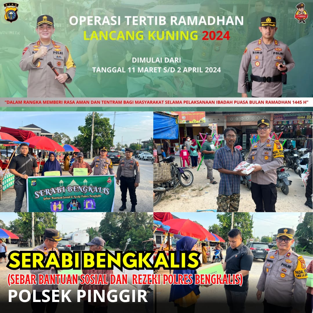 Yang mana Polsek Pinggir pada Hari Selasa, tanggal 19 Maret 2024 sekira Pukul 17.30 Wib sampai Pukul 18.15 Wib telah melaksanakan salah satu kegiatan Operasi Tertib Ramadhan berupa Sebar Bantuan Sosial dan Rezeki Polres Bengkalis (Serabi Bengkalis) pada dua titik, yaitu di Pasar Ramadhan Simpang Muara Basung dan di Pasar Ramadhan Pasar Pinggir.