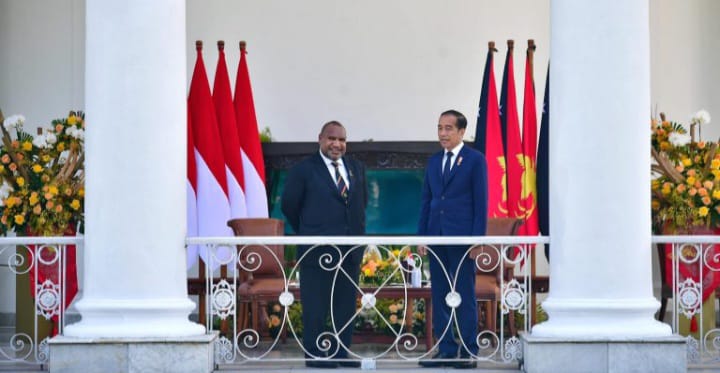 BOGOR – sahabattnipolri.com – Presiden Joko Widodo menerima kunjungan Perdana Menteri (PM) Papua Nugini (PNG) James Marape di Istana Kepresidenan Bogor, Provinsi Jawa Barat, pada Senin, 15 Juli 2024. PM Marape dan delegasi tiba di Istana Bogor sekitar pukul 10.00 WIB dan disambut langsung oleh Presiden Jokowi.