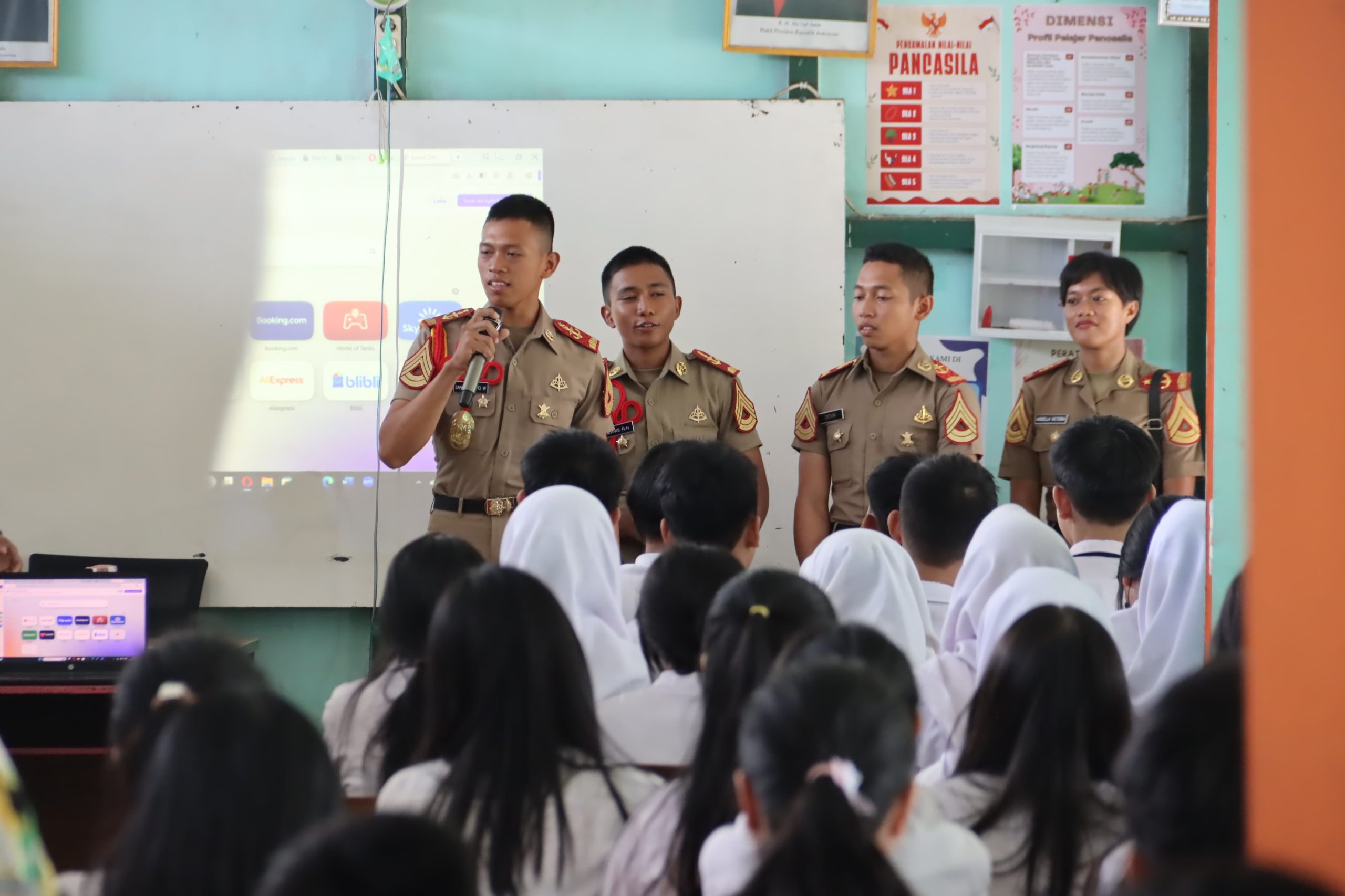 KUBU RAYA, sahabattnipolri.com – Para Pelajar SMP Kartika XVII-1 sangat antusias mengikuti sosialisasi rekrutmen Calon Taruna Akademi Militer (Akmil) Magelang. Sosialisasi dilaksanakan di SMP Kartika XVII-1, Jalan Adi Sucipto, Sungai Raya, Kubu Raya. Selasa (23/7/2024).