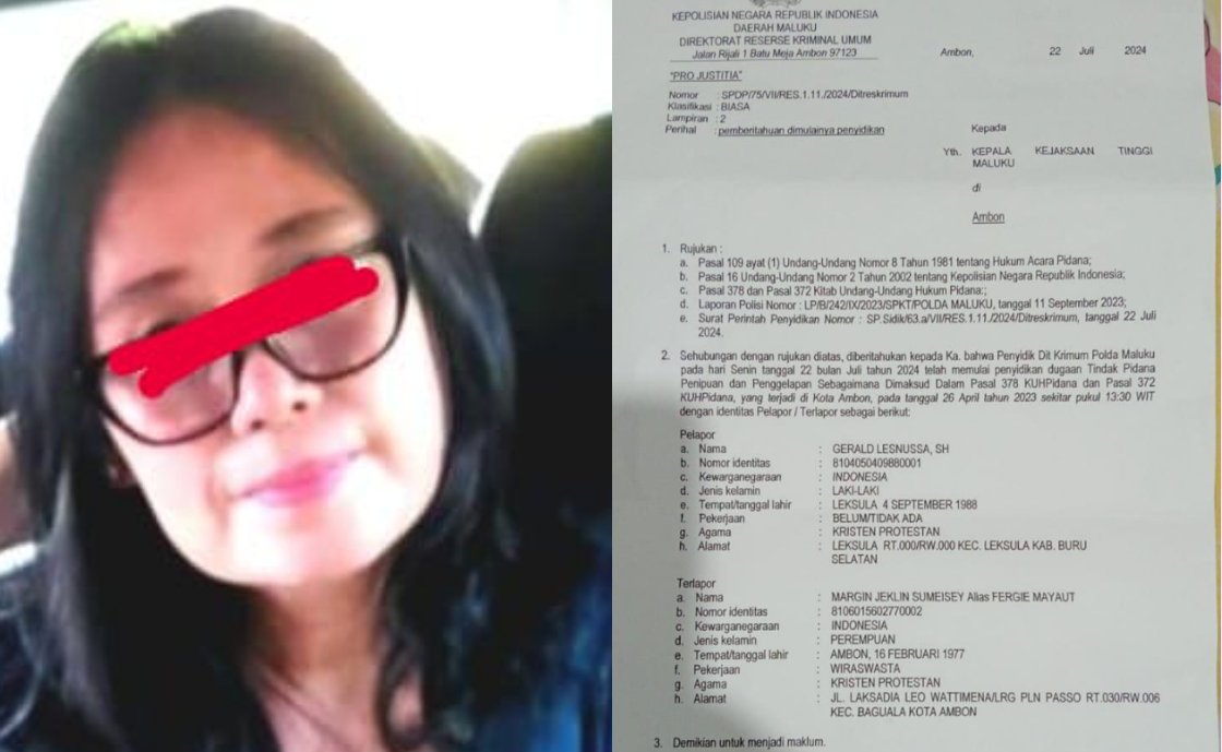 Menurut Andre, FM saat ini sudah dilaporkan oleh saudara Gerard Lenussa, Katanya, Margie Jaklyn Sumeisey alias Fergi Mayaut adalah residivis mambuhan dengan modus sama 378 penipuan masuk Polri.