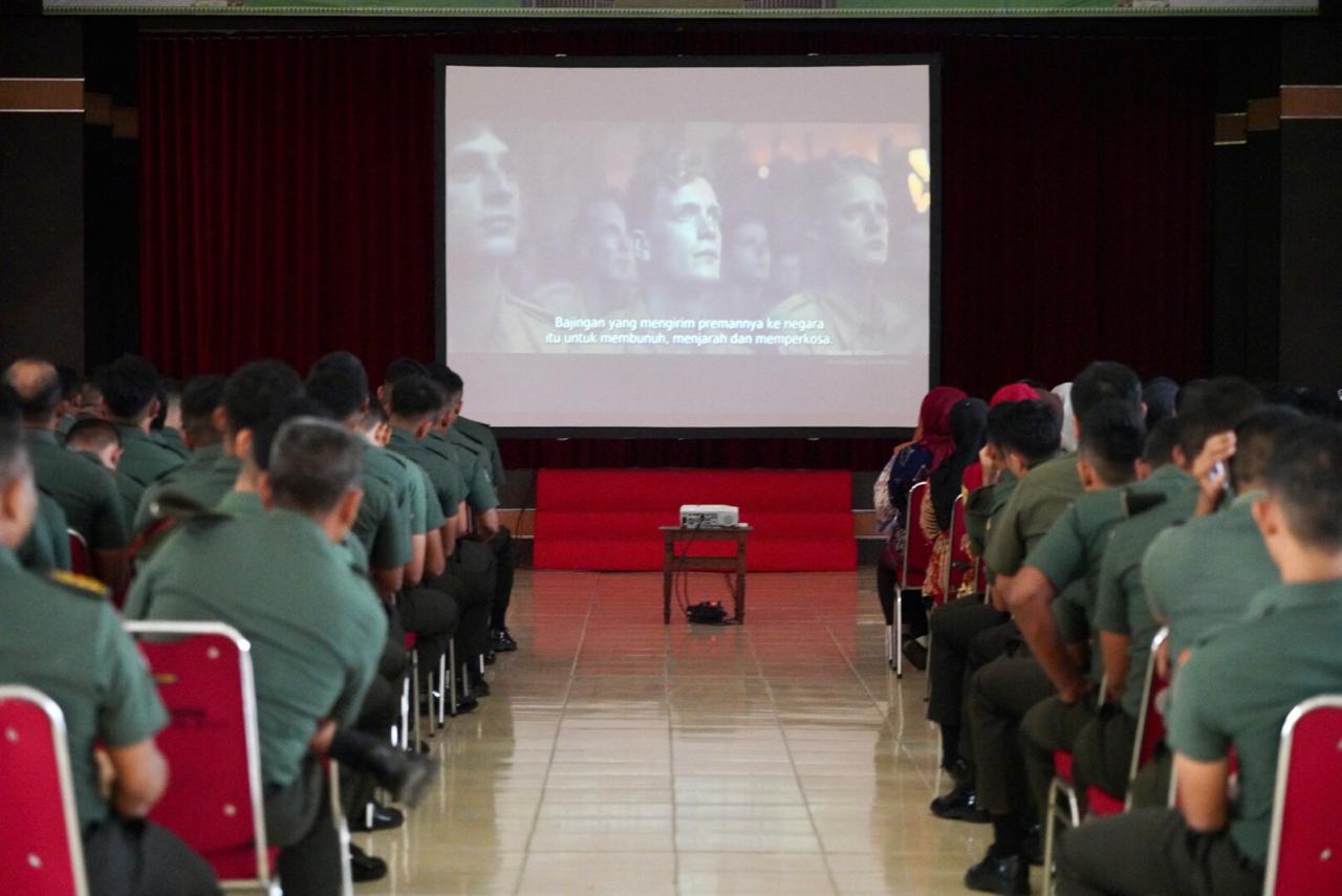 Nobar film yang berjudul De Oost, yang dilaksanakan oleh prajurit, PNS dan Persit Keluarga Besar Korem 121/Abw beserta Jajaran, menindak lanjuti Perintah Panglima TNI Jenderal TNI Agus Subiyanto, S.E., M.Si., agar prajurit, PNS dan Persit Korem 121/Abw mengingat kembali serta memahami tentang sejarah kelam, kekejaman penjajahan Belanda di Indonesia dahulu kala.