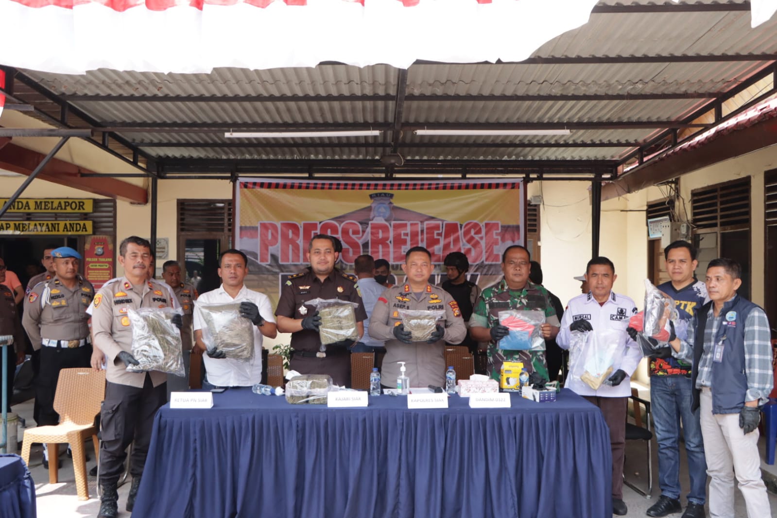 Usai gelar press release, Kapolres Siak bersama unsur terkait yang hadir memusnahkan sebagian barang bukti Narkotika daun ganja dengan cara dibakar.