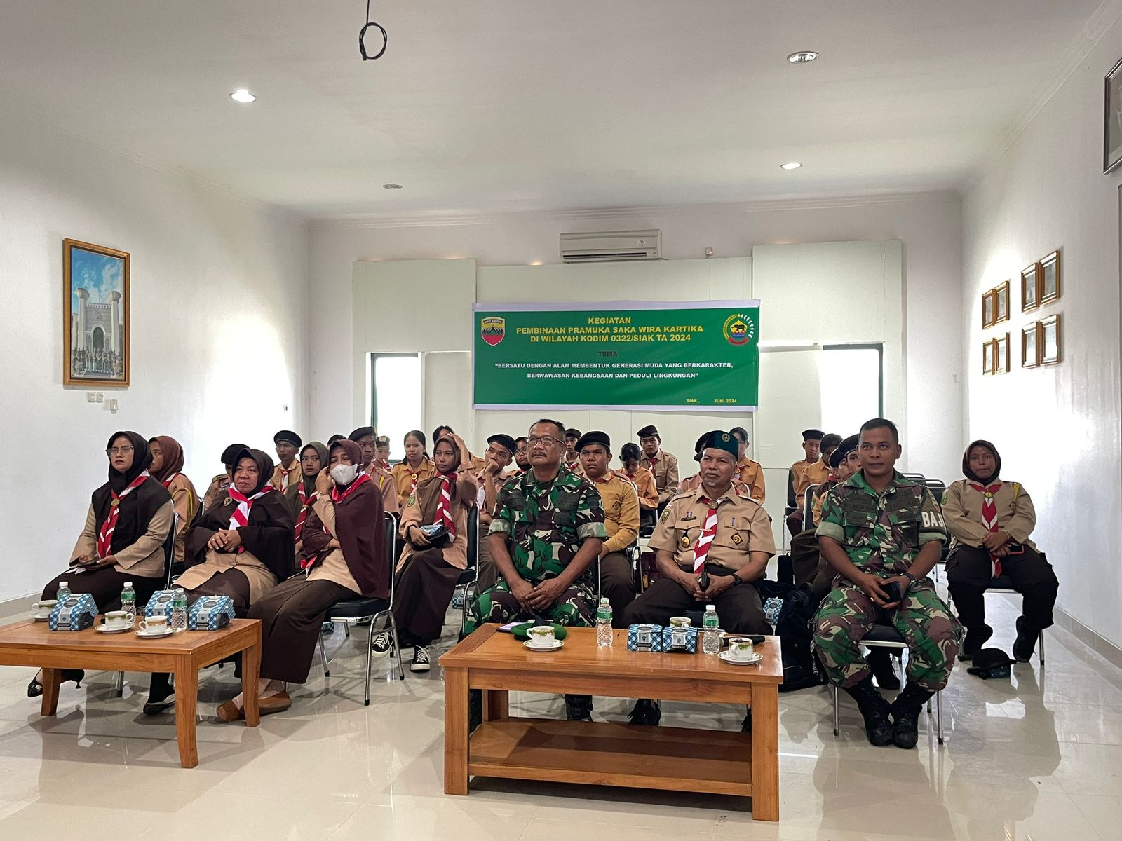 Pada hari Rabu, tanggal 14 Agustus 2024, Kodim 0322/Siak mengikuti Upacara Peringatan Hari Pramuka Ke-63 Tahun 2024 secara virtual conference (vidcon) di Ruang Aula Makodim 0322/Siak, upacara ini berpusat di Lapangan Utama Bumi Perkemahan dan Graha Wisata (Buperta) Cibubur, Jakarta Timur dan dipimpin oleh Wakil Presiden RI Ma’ruf Amin.