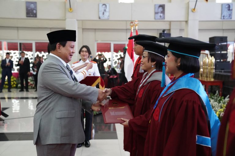 BOGOR, sahabattnipolri.com – Menteri Pertahanan RI Prabowo Subianto menghadiri wisuda 425 Mahasiswa Unhan RI dari Program Pendidikan Diploma (D3), Sarjana (S1), Magister (S2), dan Doktor (S3) untuk Tahun Akademik 2024, di Gedung Aula Merah Putih (AMP), Kampus Utama Unhan RI, Sentul-Bogor, Jawa Barat, Sabtu (24/8).