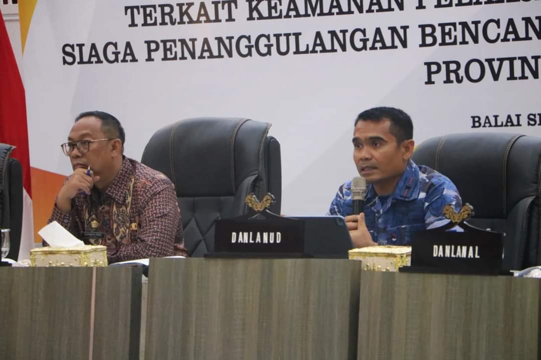PEKANBARU, sahabattnipolri.com -Komandan Pangkalan TNI Angkatan Udara Roesmin Nurjadin Marsma TNI Feri Yunaldi, S.E., M.Han., mendampingi Pj. Gubernur Riau (Gubri) Rahman Hadi melaksanakan Rapat Koordinasi Forkopimda Provinsi Riau Terkait keamanan pelaksanaan Pilkada Tahun 2024, siaga penanggulangan bencana kebakaran hutan dan lahan Provinsi Riau, berempat di Gedung Daerah Balai Serindit, Kota Pekanbaru, Kamis (3/10/2024).