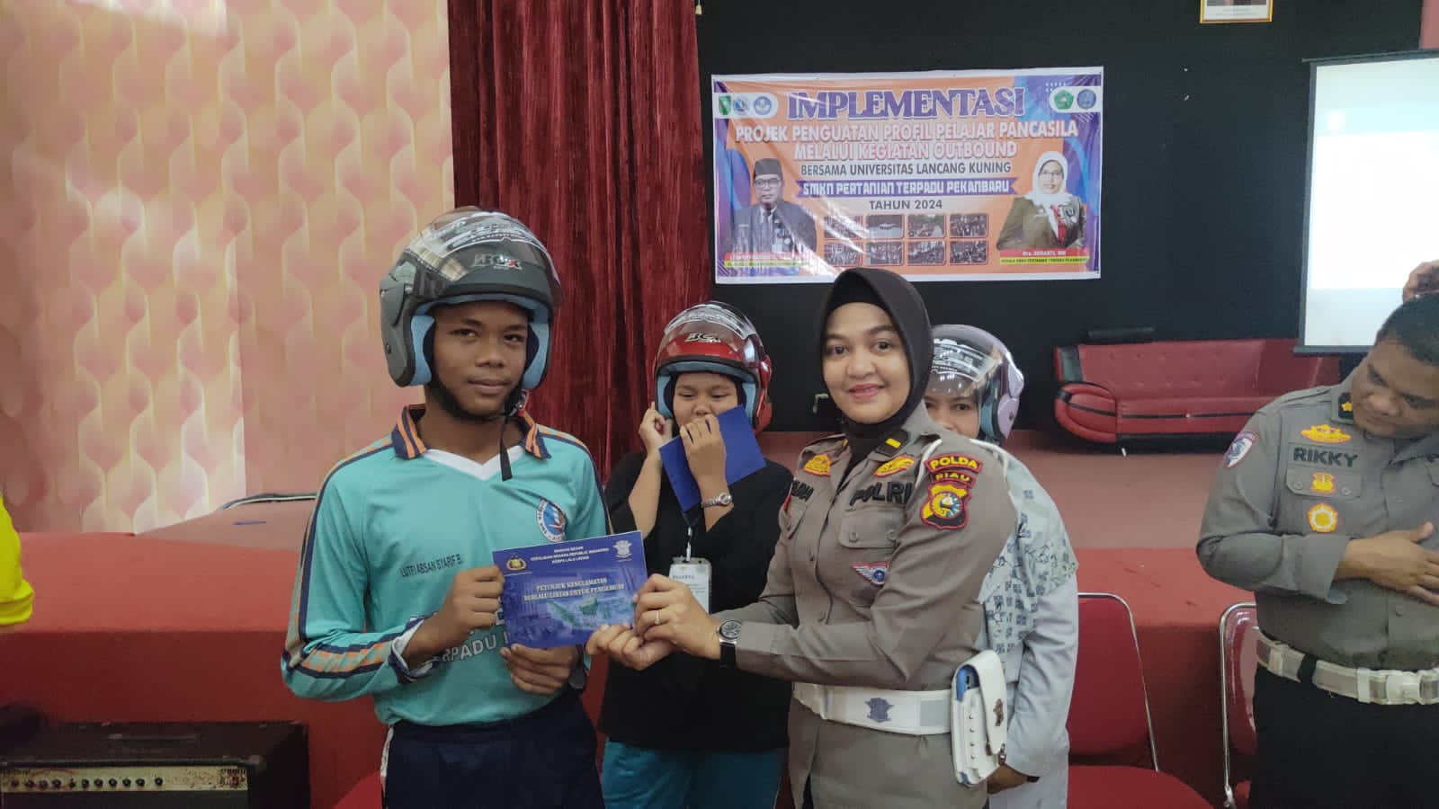 Kegiatan Police Goes To School Ditlantas Polda Riau yang berlangsung di Aula SMK Pertanian Pekanbaru yang di mulai sekira Pukul 09.00 WIB tersebut berlangsung dengan aman, tertib dan lancar, diharapkan dengan adanya kegiatan tersebut, para siswa-siswi selaku General Z bisa menjadi Pelopor Keselamatan dalam berlalu lintas, serta bijak dalam menggunakan media sosial.